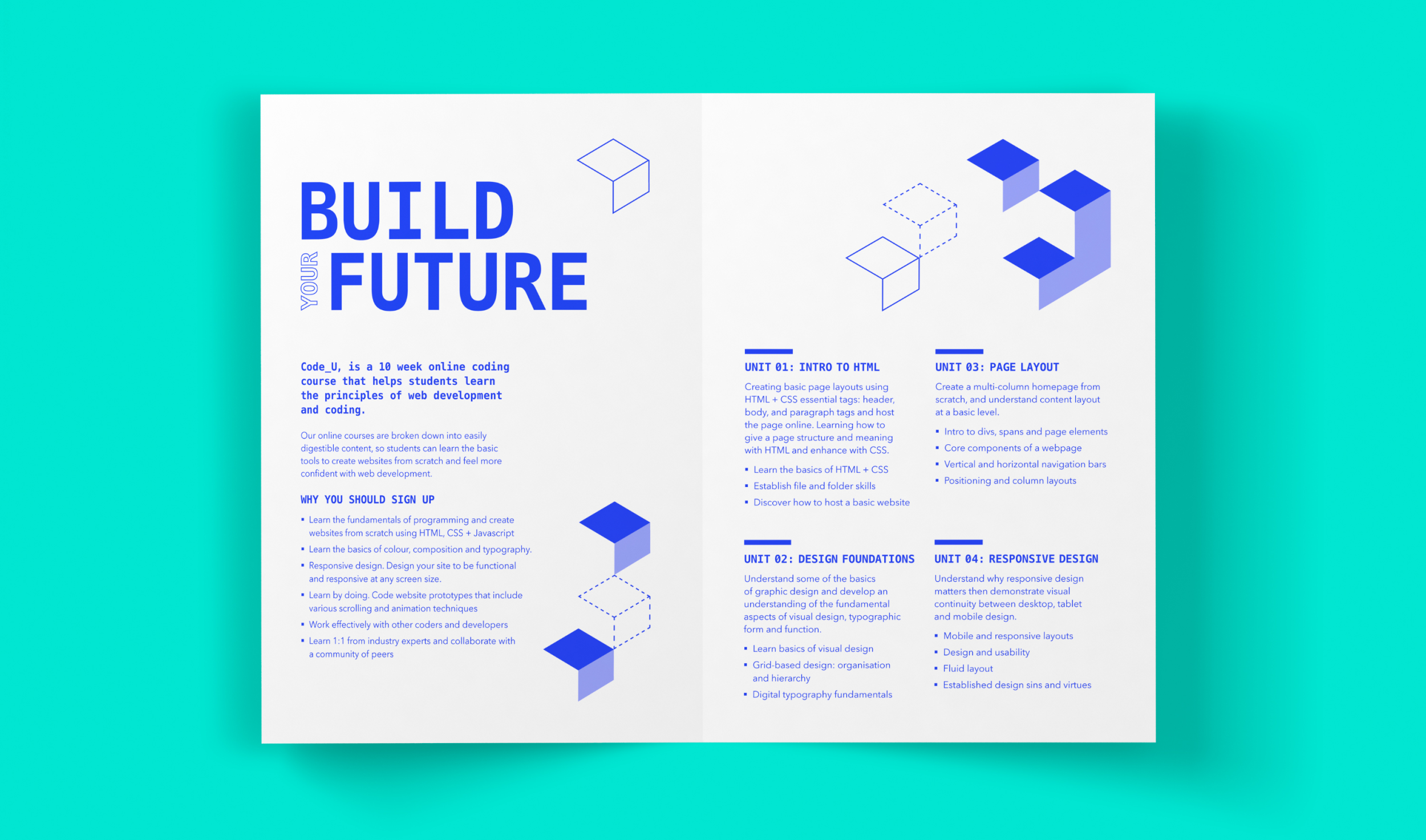 Code U is an online coding school promoting Click Code Create, their new course targeted at young, creative professionals who wish to up-skill in coding.
